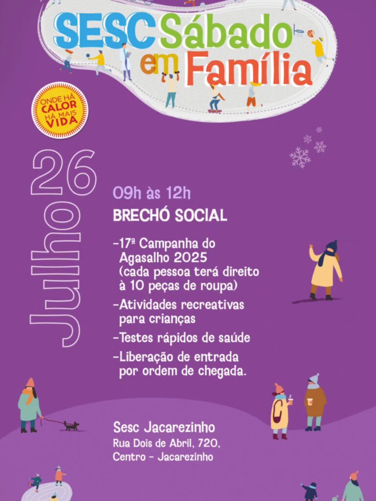 O evento contará com um Brechó Social da 17ª Campanha do Agasalho 2025, onde cada pessoa poderá retirar até 10 peças de roupa. Haverá ainda atividades recreativas para crianças, testes rápidos de saúde e organização de entrada por ordem de chegada.