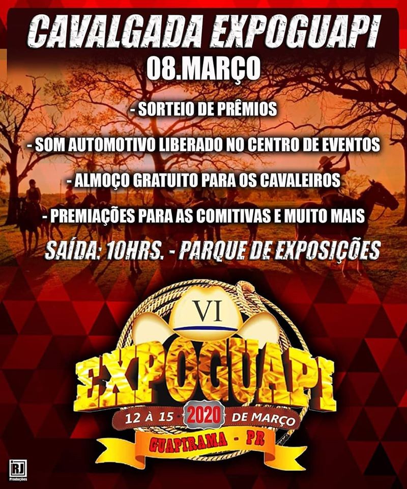 A Exposição Agropecuária de Guapirama está chegando, e neste domingo, dia 8, acontece a tradicional cavalgada pelas ruas da cidade. Com saída as 10h da manhã do Parque de Exposições.