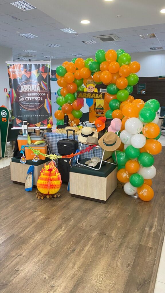 As agências foram transformadas com decorações temáticas, bandeirinhas coloridas, balões e elementos que remetem às tradicionais festas de São João. Além do visual festivo, quem passa pelas agências pode se deliciar com guloseimas juninas, como pipoca, paçoca, pé de moleque, bolo de milho, entre outros quitutes típicos que aquecem o coração e o paladar nesta época do ano.