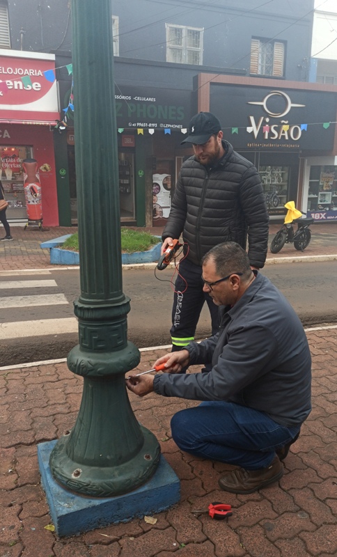 Na manhã desta terça-feira, dia 8, equipe da parte elétrica da Prefeitura esteve no Calçadão Manoel Arrabaça, paralelo à Rua Marechal Deodoro, no centro da Cidade, para verificar a falta de energia nos postes.