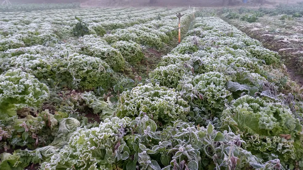 A onda de frio e geadas que atingiram com mais força no inicio da semana já deixa agricultores em alerta, principalmente os que plantam hortaliças, banana e cana-de-açúcar. Isso porque, em caso de geada, essas culturas costumam ser as mais sensíveis.