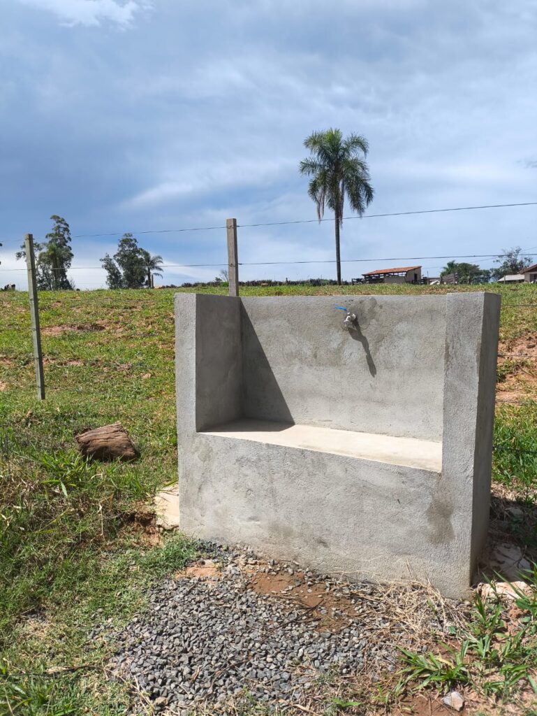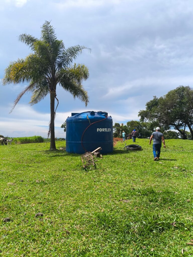 O importante investimento começou com a instalação de um poço artesiano, seguida pela implantação de um reservatório de água (caixa d’água), padrão de energia elétrica e uma ampla estrutura de distribuição, que inclui aproximadamente 500 metros de encanamento, permitindo que a água chegue diretamente ao local de uso.