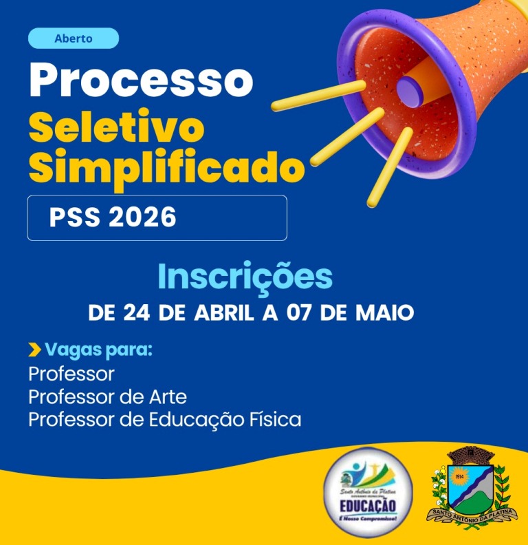 A Prefeitura de Santo Antônio da Platina (gestão 2025/28), através da Secretaria Municipal de Educação lançou o Edital nº 02/2026 para o Processo Seletivo Simplificado (PSS) que visa à contratação temporária de professores para atender a rede municipal de ensino.