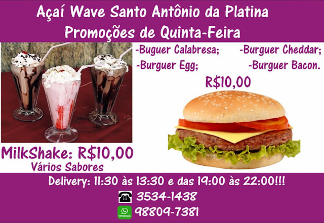 O Açaí Wave de Santo Antônio da Platina está sempre realizando deliciosas promoções a seus clientes e em especial nesta quinta feira, confira: