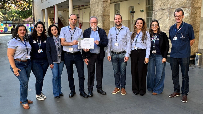 O diretor Adriano Brollo recebeu, em nome da equipe de coordenadores, professores, colaboradores, alunos e familiares, os votos de congratulações e o diploma de Menção Honrosa. “São várias gerações que passaram pela instituição, desde a fundação em 1955, e tiveram a oportunidade de desfrutar de um ambiente saudável, com estudos avançados, artes, cultura, esportes, integração com a comunidade e com a realidade de cada época”, destaca a justificativa da honraria.