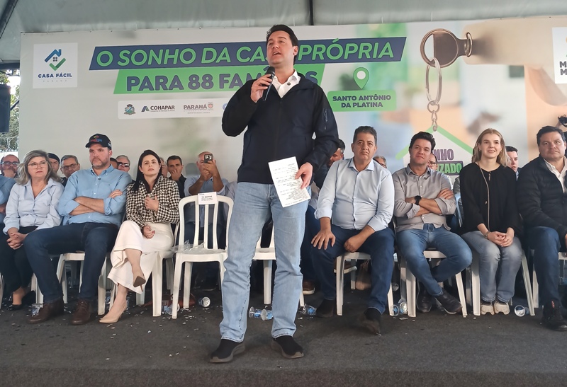 Ratinho apontou as melhorias que seu governo fez em alguns programas habitacionais para melhor atender o povo do Paraná, com isso foram mais de 110 mil casas no Casa Fácil. Também o Minha Casa, Minha Vida passou por reestruturação e foram mais de R$ 1 bilhão e 400 milhões investidos. E destacou que foi criado por seu governo o Programa Casa Fácil Terceira Idade para atender as pessoas com mais de 60 anos que não podiam financiar. “O Paraná é amigo do idoso”. E enfatizou que “vamos pavimentar todas as ruas das 399 Cidades paranaenses, para isso, cortamos mordomias, deixamos de alugar jatinho, diminuímos despesas e os investimentos estão chegando também no Norte Pioneiro”. Finalizou sua fala dizendo que “o Paraná tem o maior volume de pessoas registradas. São 25 mil vagas disponíveis de emprego nas Agências do Trabalhador e, ainda lembro que neste segundo semestre começam as obras de duplicação da rodovia que liga Jacarezinho até o trevo que vai para Joaquim Távora”.