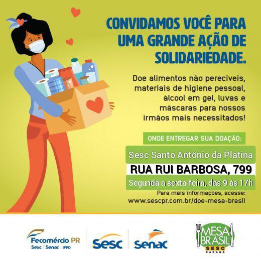 As doações poderão ser entregues no próprio SESC de Santo Antônio da Platina, localizado na Rua Rui Barbosa, 799, no centro da cidade, das 09h às 17 horas (de segunda a sexta-feira). Serão recebidos alimentos não perecíveis em geral e produtos de higiene pessoal e limpeza, os quais serão destinados à Prefeitura de Santo Antônio da Platina.